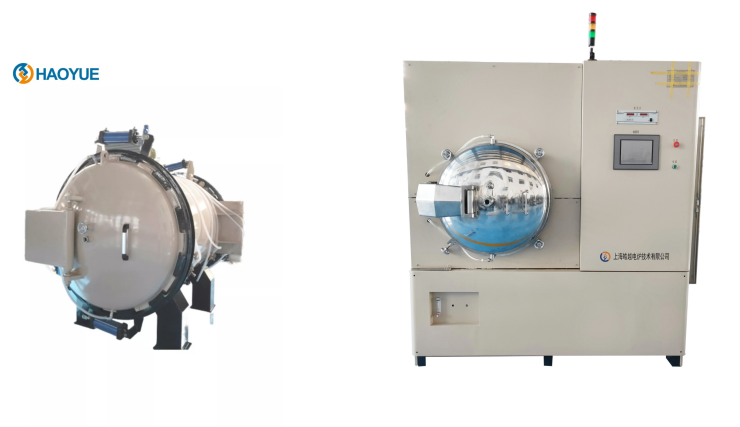 上海皓越自主研發(fā)的真空燒結爐(左)和真空熱壓爐(右)