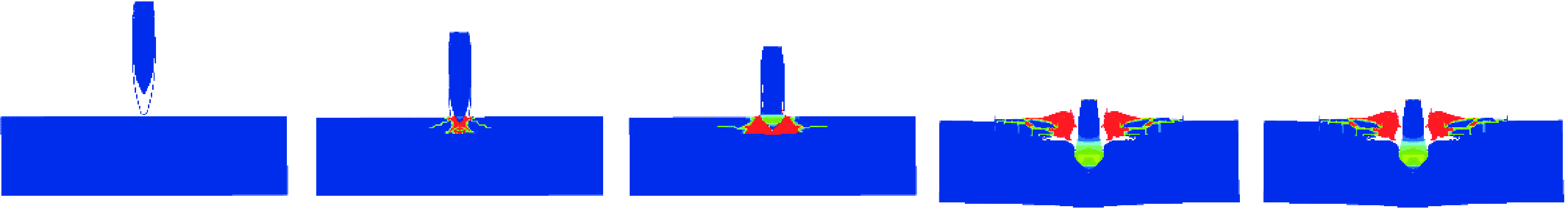 彈體對復(fù)合陶瓷裝甲材料的侵蝕過程主要經(jīng)歷開坑、侵徹和沖塞三個(gè)過程。