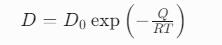 其中D為擴(kuò)散系數(shù),強(qiáng)烈依賴(lài)于溫度(通過(guò)Arrhenius方程描述):